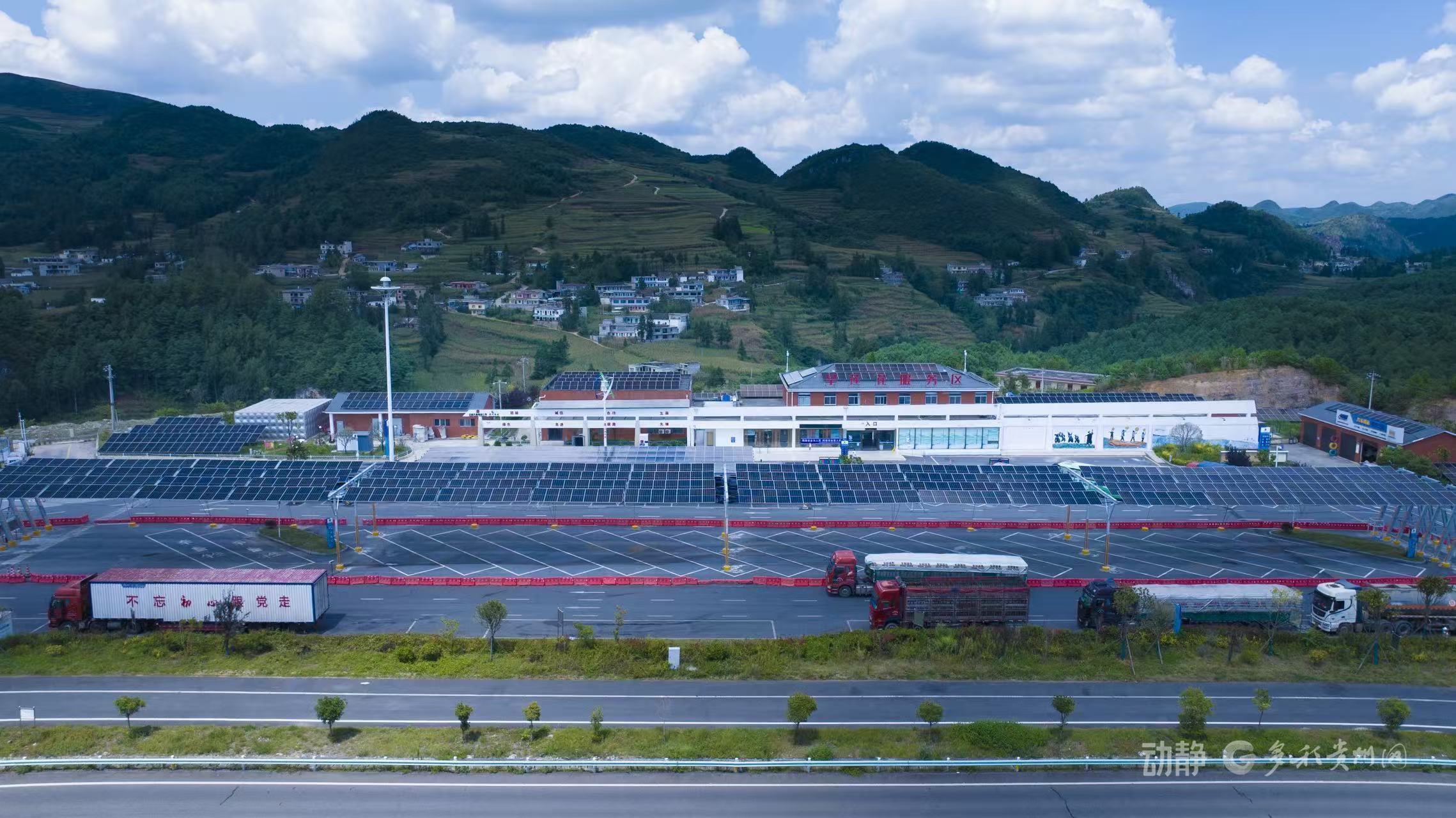 旱莲花服务区位于毕节市赫章县,是毕威高速公路核心服务枢纽,旱莲花服务区“风光储充一体化”项目于2023年2月启动,2024年5月实现全容量并网发电。项目装机容量为2.26兆瓦,同步配套风能发电、储能系统及充电桩三大功能模块,覆盖服务区地面、屋面、车棚等多种场景,年发电量约221万度,年营运自用电量约56.6万度,实现服务区新能源或清洁能源发电的100%供给,用电量中新能源或清洁能源电量比例达到90%,服务区生活污水清洁化处置达到国家排放相关标准要求。