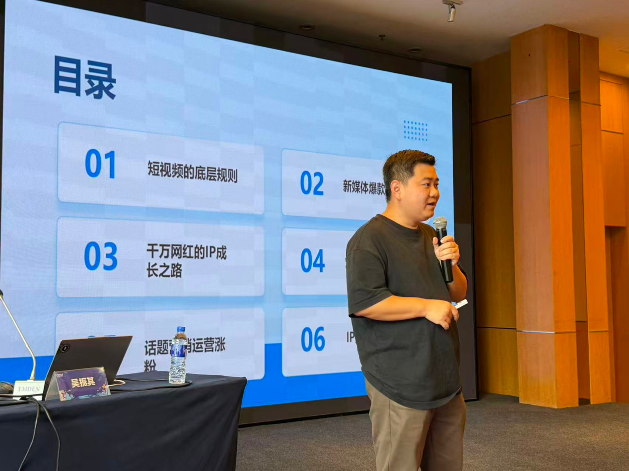 抖音培训讲师吴振其拥有10年新媒体实战经验,是四川文旅、重庆文旅等多地政务新媒体的策划顾问,曾成功策划“甜野男孩丁真”“文旅局长说文旅”等全国性爆款案例。他以“文旅爆款流量背后的故事——新媒体短视频及达人IP打造”为题,结合自身运营多个百万级账号的实战经验,通过解析成功案例,深入浅出地分享了短视频内容策划、IP人格化塑造以及流量可持续运营的实用技巧,助力学员提升内容创作与品牌建设能力。