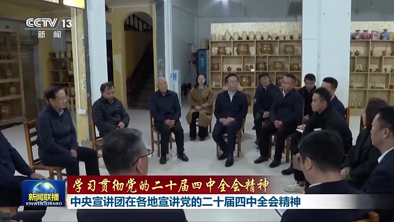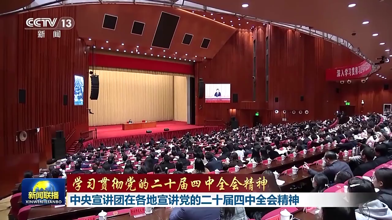 今天(11月10日),央视《新闻联播》播出新闻《【学习贯彻党的二十届四中全会精神】中央宣讲团在各地各部门宣讲党的二十届四中全会精神》,报道说,连日来,学习贯彻党的二十届四中全会精神中央宣讲团成员在各地宣讲,并与基层干部群众互动交流,推动全会精神学习走深走实。