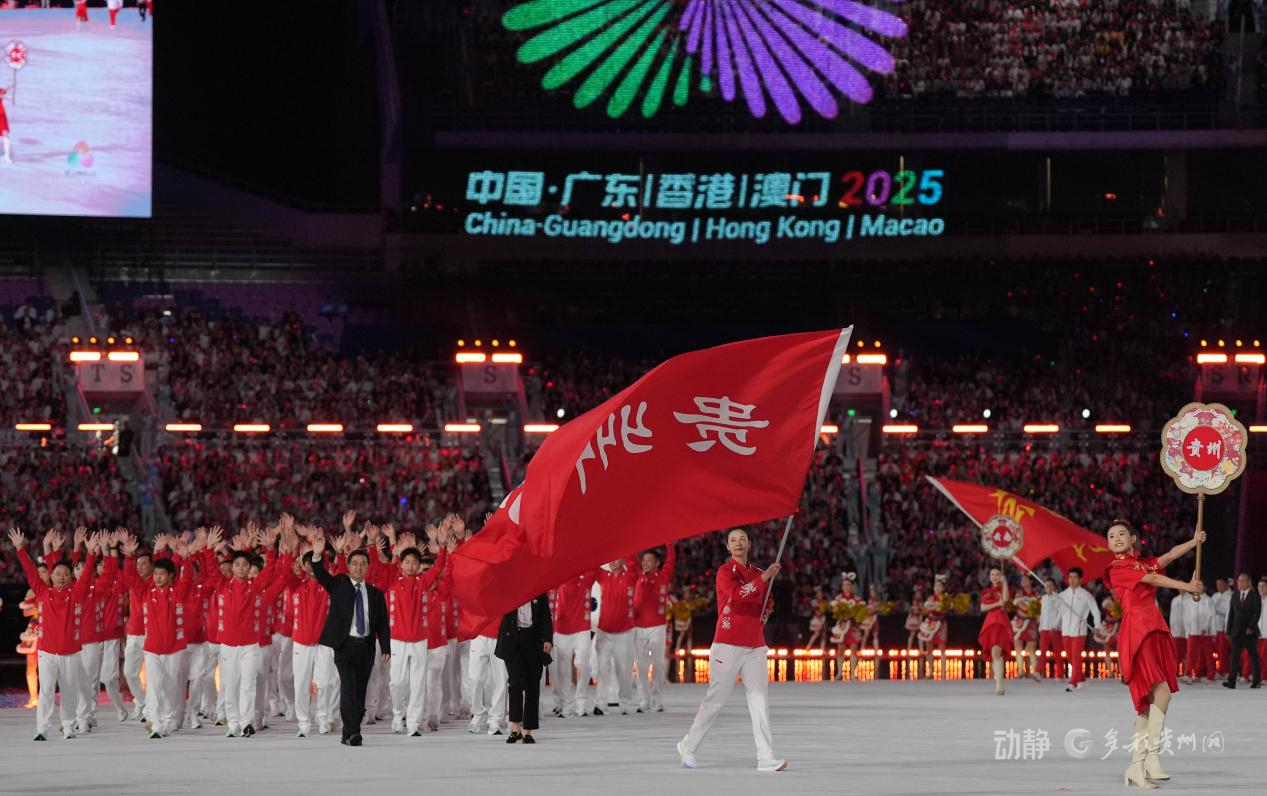 入场仪式上,贵州代表团迈着整齐步伐与各代表团依次登场,运动员们精神抖擞、斗志昂扬,充分展现出新时代体育健儿昂扬向上、团结奋进的精神风貌。