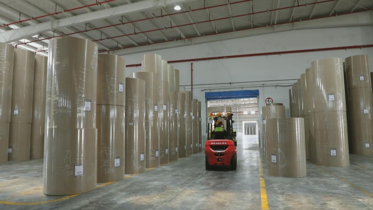 公司副总经理王剑介绍:“我们主要生产的产品是高强度瓦楞纸、牛皮箱板纸、纱管纸。今年以来,生产成品纸50.97万吨,销售成品纸49.57万吨,主要销往广东、广西、云南等地,今年我们的计划是实现年产60万吨。”