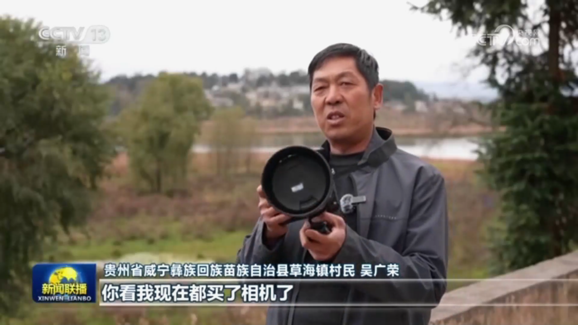 贵州省威宁彝族回族苗族自治县草海镇村民吴广荣说:“房前屋后的卫生越来越干净,在我们草海有十来万只鸟来越冬,我现在都买了相机了,随时可以拍鸟,生活水平是越来越高了。”
