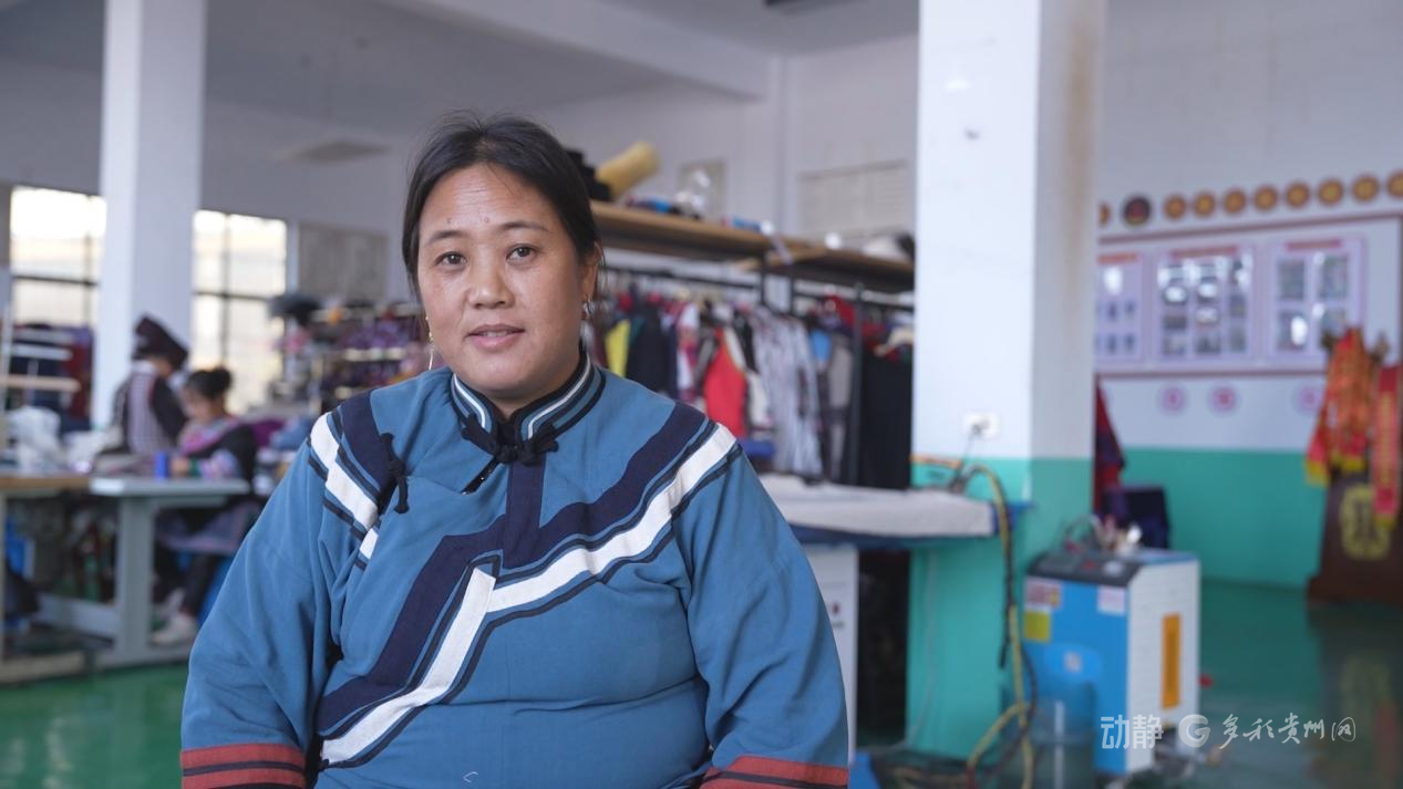 六盘水盘州市淤泥艺胜民族民间旅游产品有限公司绣娘王筛米告诉记者:“一个月(工资)基本2700元到2800元。心头是高兴的,自己可以上得了班。”