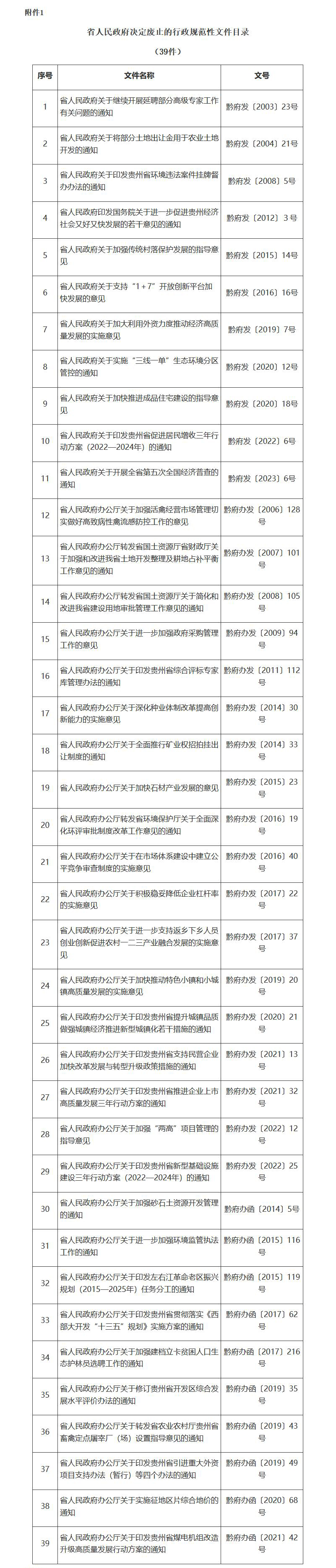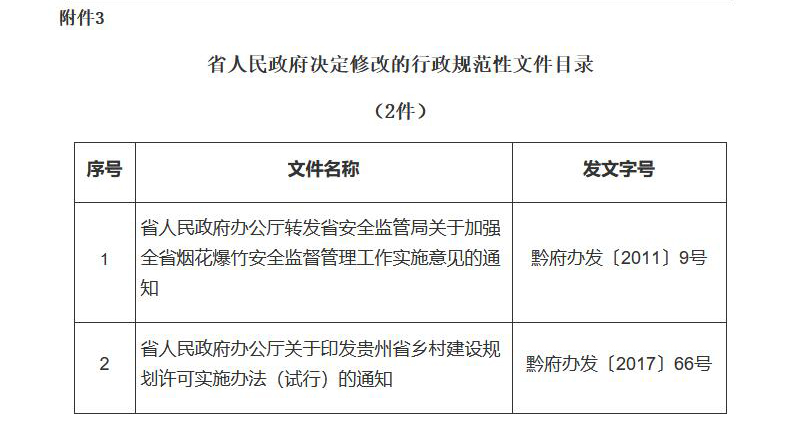 1月6日,贵州省人民政府网发布《关于废止、宣布失效、修改部分行政规范性文件的决定》。