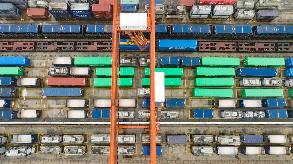 在贵阳国际陆港,满载1800多吨铝矾土的集装箱即将装车出发,运往广西北部湾钦州港。