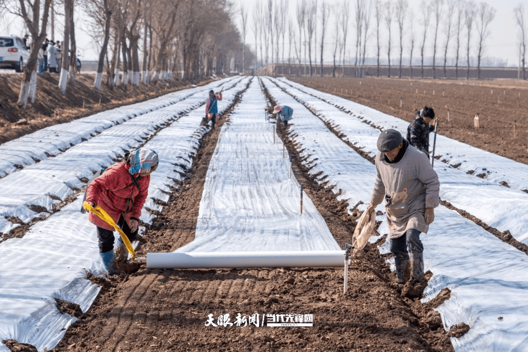 春播期间,土地起垄和浇水循序渐进