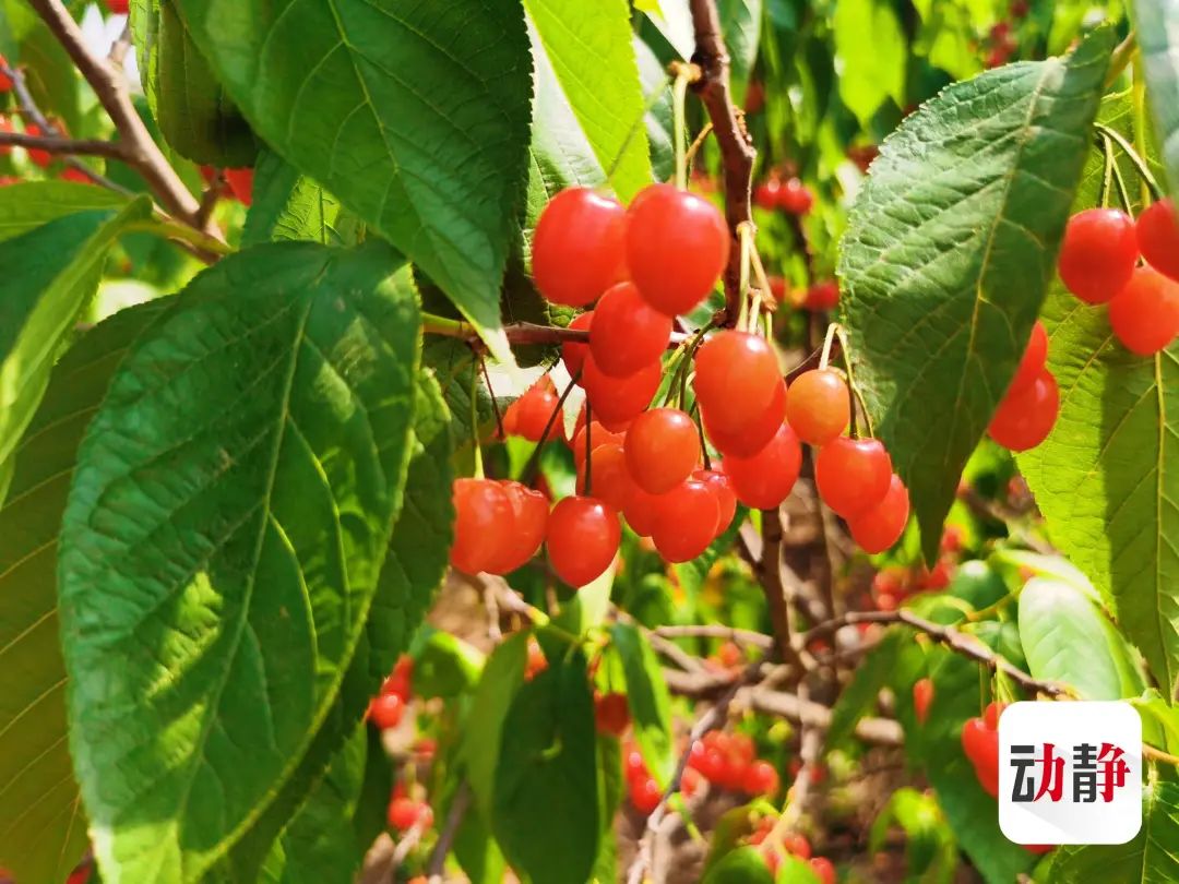 走进杨家湾镇发达村、七星村的樱桃园,满园樱桃树上果实累累,层层叠叠的绿叶间,一颗颗晶莹剔透的玛瑙红樱桃显得格外娇艳,让人垂涎欲滴。