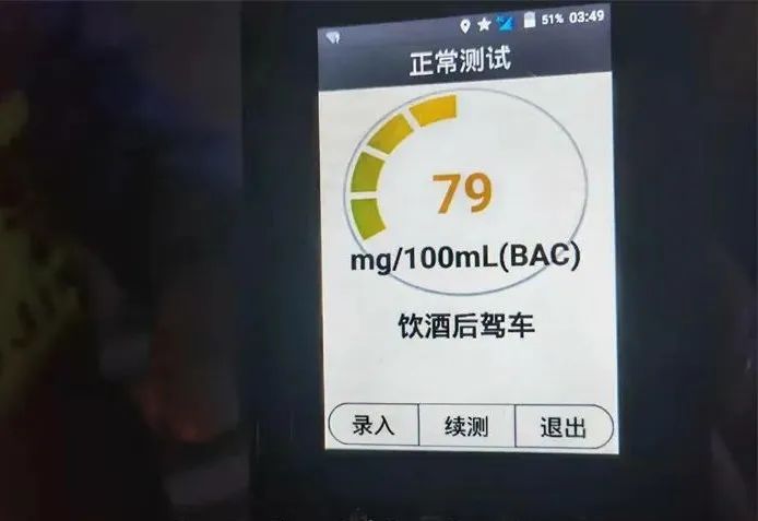 凌晨3点30分许,云岩交警一中队民警在宝山北路对一辆二轮摩托车检查时,发现摩托车驾驶员谢某神情慌张且身上散发出酒味,经现场呼气式酒精检测,结果为79mg/100ml,属于饮酒后驾驶机动车,差一点就达到80mg/100ml的醉驾查处标准。