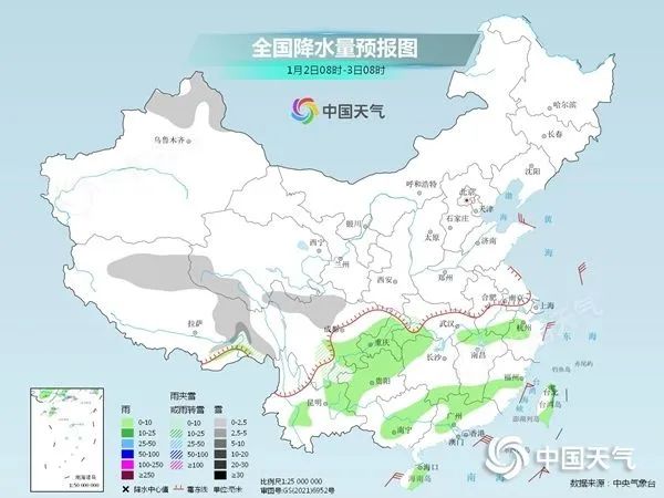 不过,受南下弱冷空气和南支槽共同影响,今明两天,西南地区的阴雨雪天气再度发展增多,并且会向东波及到江南北部一带,1月2日上述地区的降水就会明显减弱。此外,北方大部仍将维持雨雪稀少的状态。