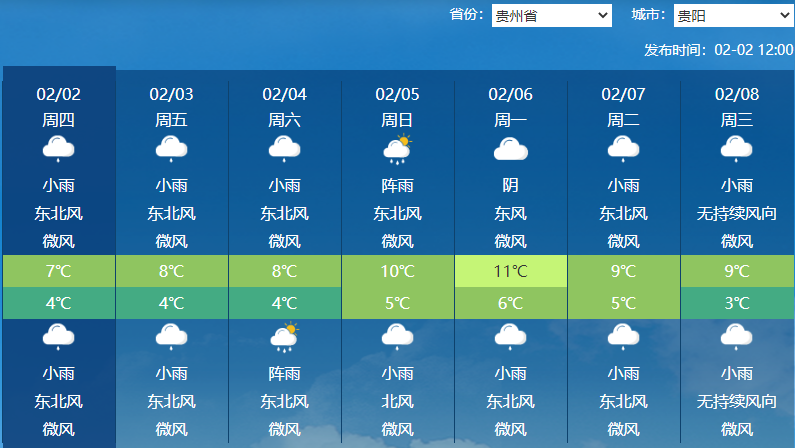 昨天(2月1日)白天,贵阳各地最高气温在15.3℃(开阳)至18.7℃(花溪)之间,而今日14时各地气温在3.7℃(开阳)至6.1℃(清镇)之间,在冷空气、大雾、雨雾天气的“配合”下,贵阳贵安多地气温再度“大跳水”,再次开启过冬模式,且由于空气湿度大,体感温度会比实际气温再低一些。