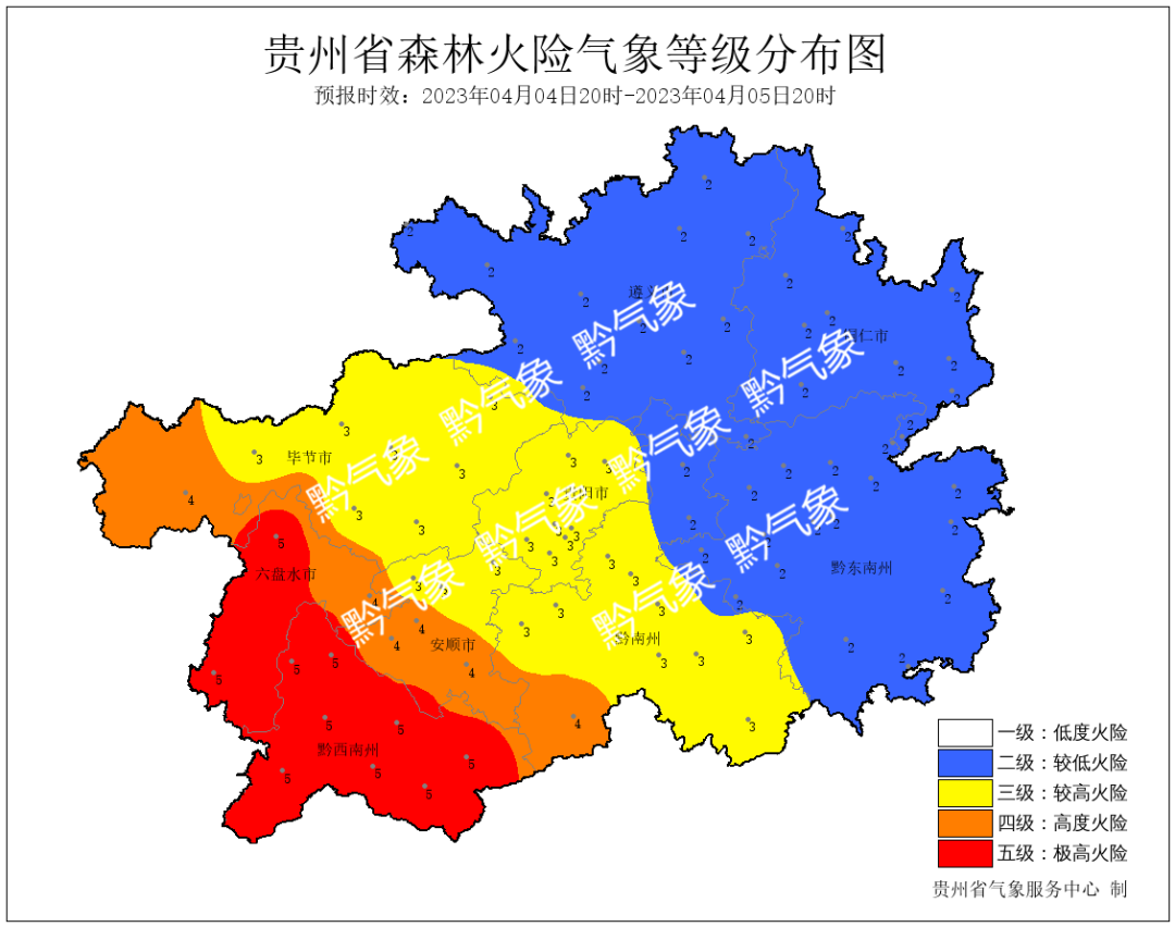 尤其是省的西南部地区森林火险气象等级为5级,