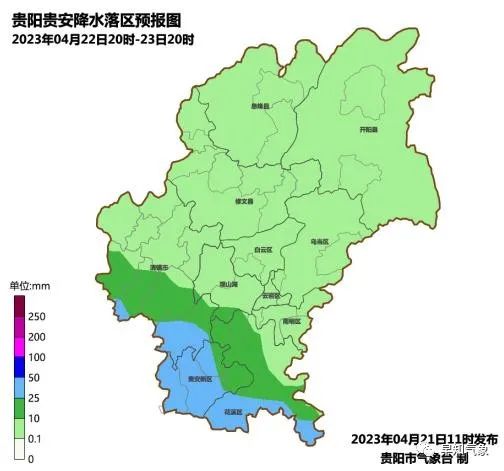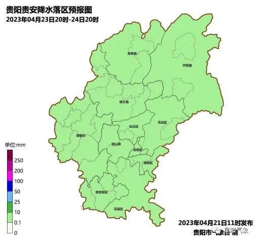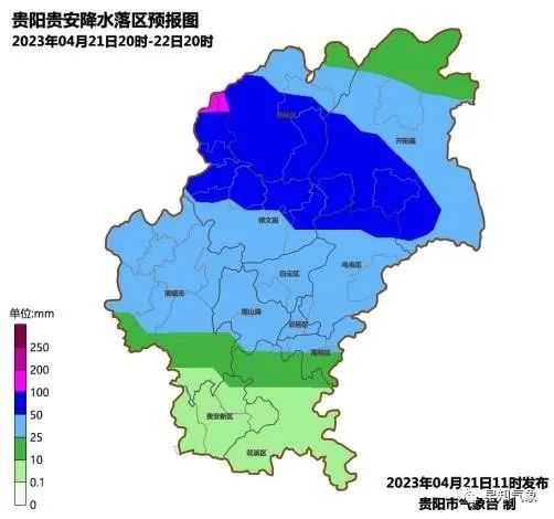 预计4月21日15时至22时,贵阳贵安阴天间多云转阵雨或雷雨,雨量中到大雨,并伴有短时冰雹、强降水、大风等强对流天气。