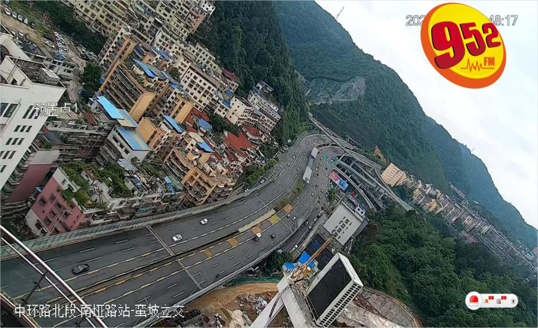 中环路南段黔江路站往南岳山隧道方向,由于多个车道汇集,一般早高峰时这里也是易缓行路段之一,但是一般进入南岳山隧道之后通行情况就会好转。