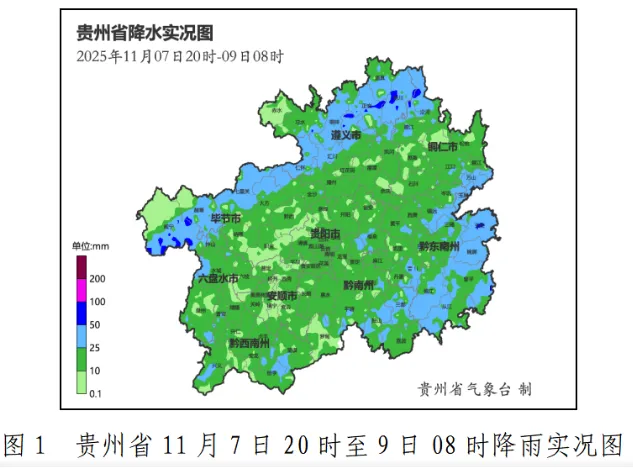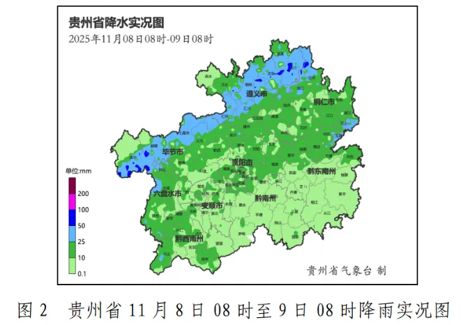 黔东南州东部和南部雨量在25毫米以上