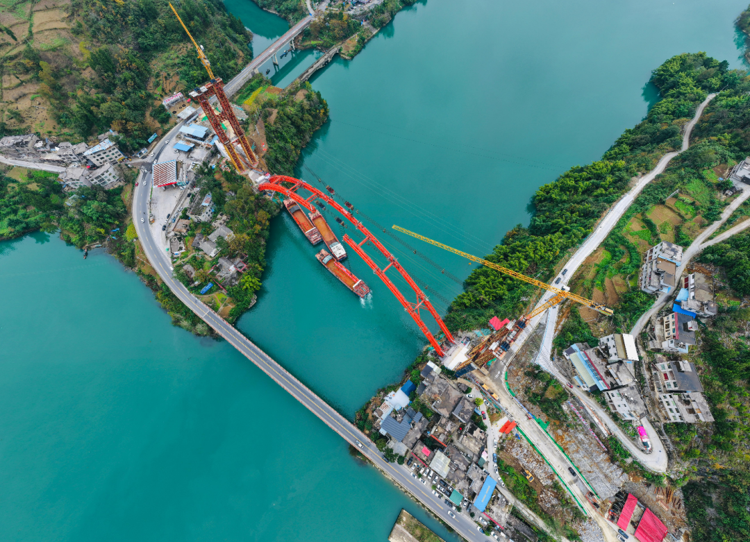 白果坨大桥改建项目属于“乌江渡—龚滩三级航道建设工程”的核心组成部分。主要建设内容包括新建一座中承式钢管混凝土拱桥及拆除原有一座钢筋混凝土上承式拱桥。