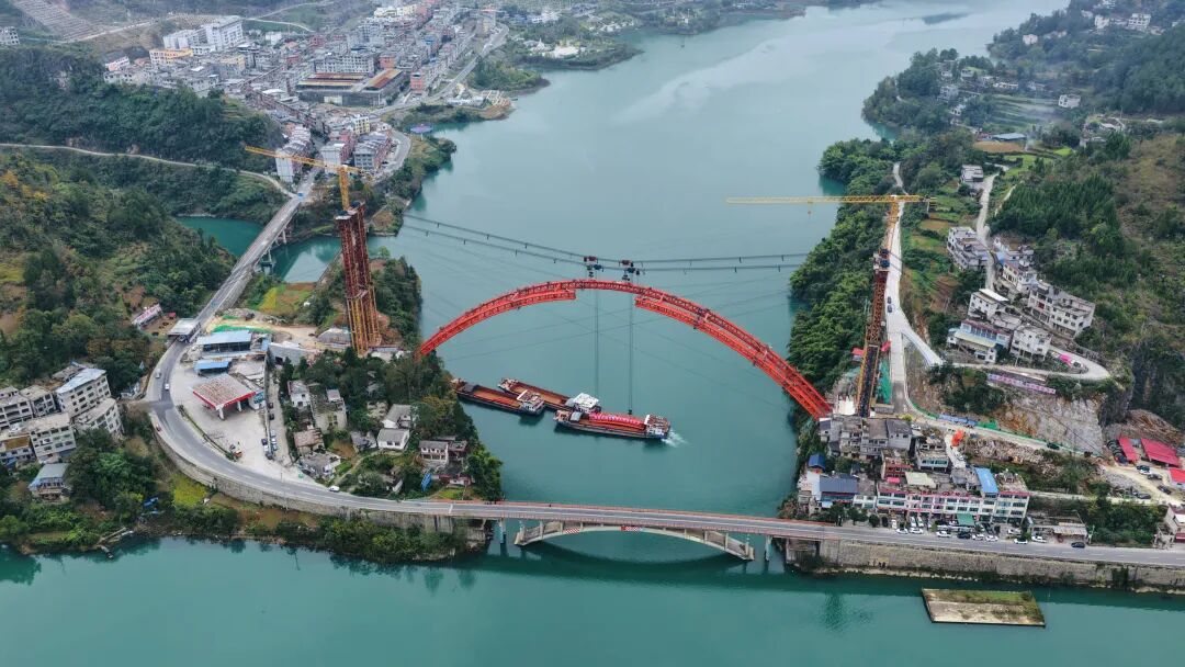 面对这些挑战,建设团队通过推行精细化管理,优化施工组织与结构设计,并依托乌江水路运输优势,有效提升了工程效率与绿色建造水平。项目自2025年2月中旬正式进场,历时八个半月,顺利实现大桥合龙目标。