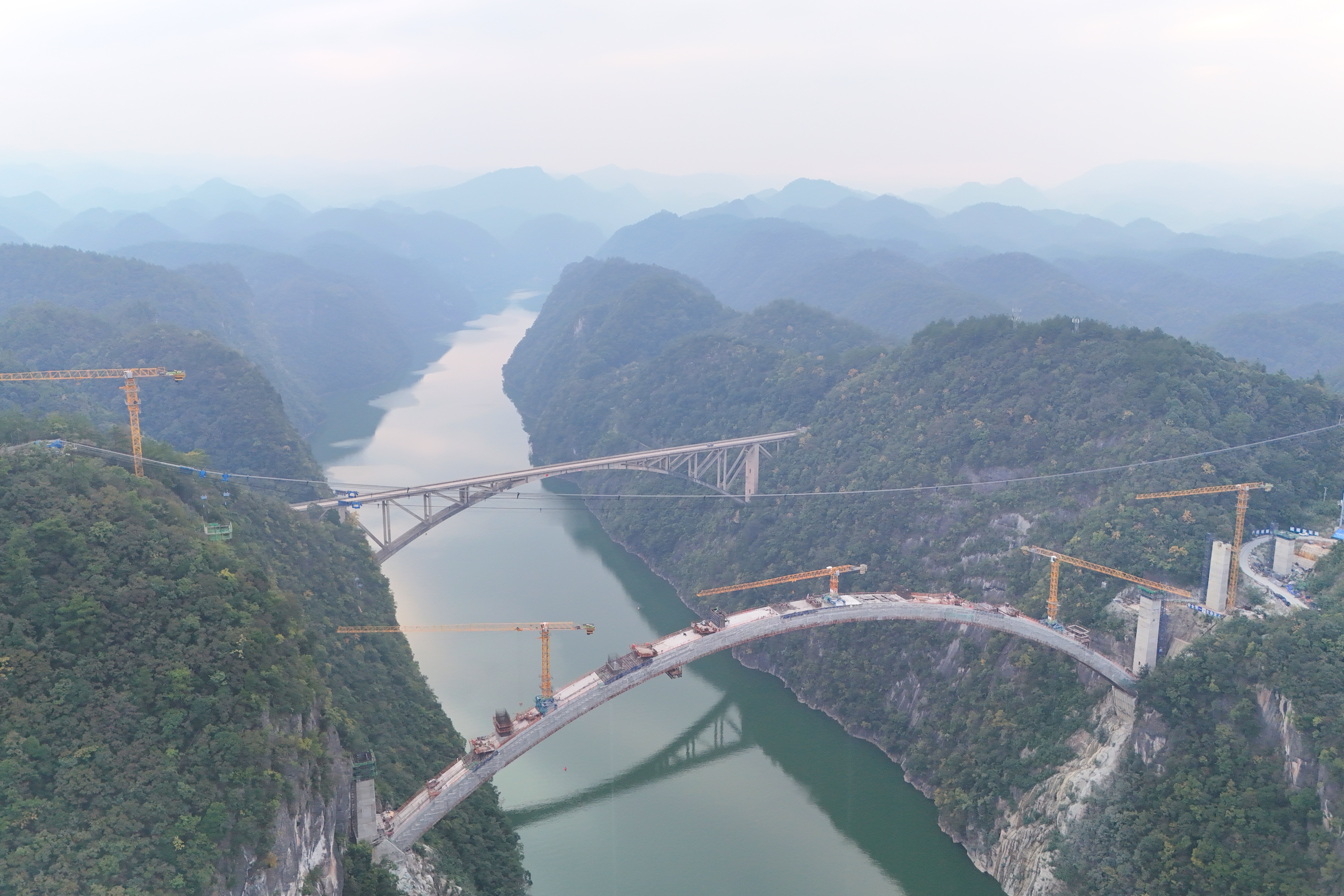 瓮马铁路南北延伸线项目乌江特大桥拱圈外包混凝土顺利合龙