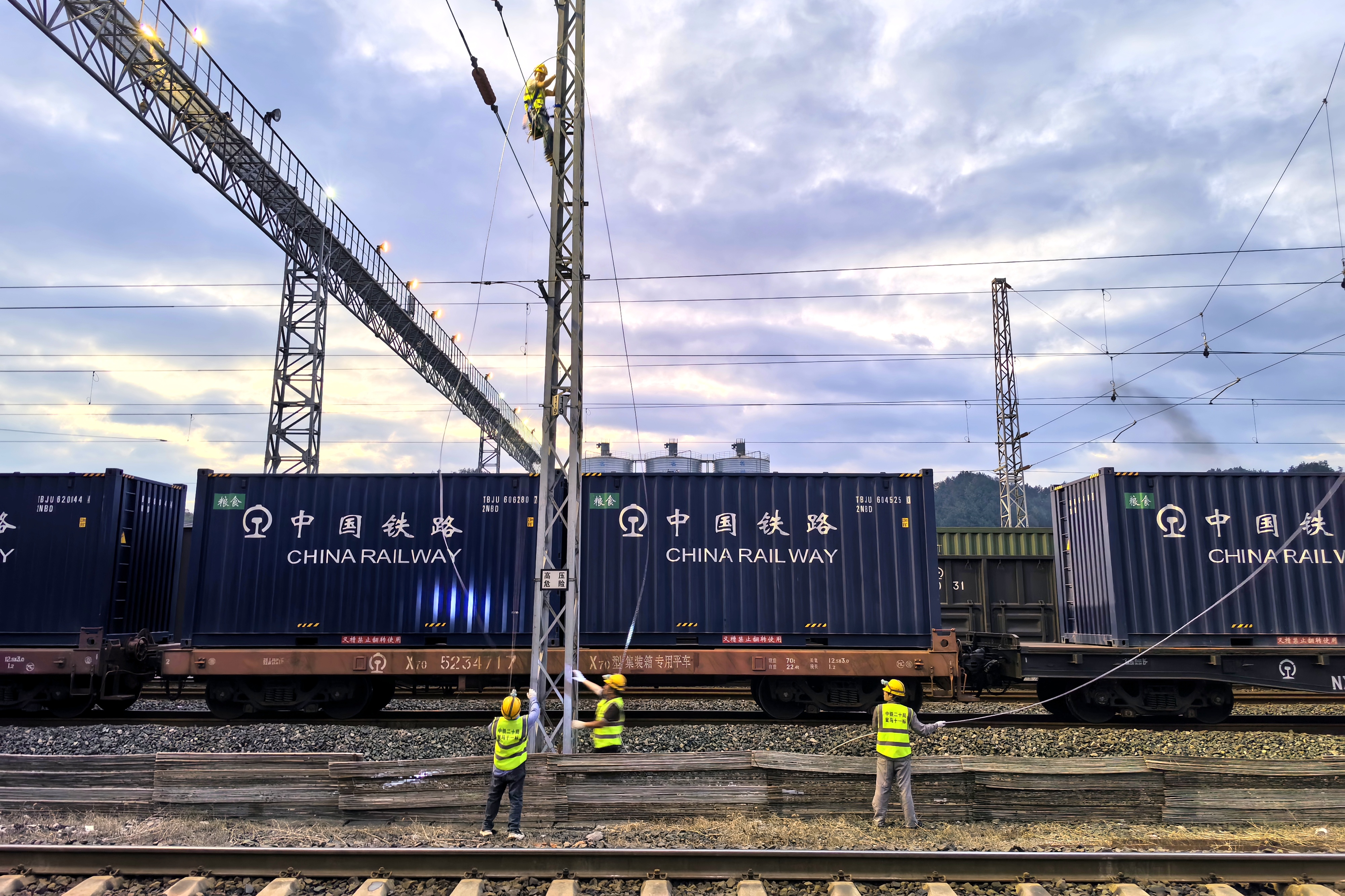 目前,电力工程站场照明已安装到位,供电网络基本成型;信号工程过轨开挖全部完成,电缆敷设有序推进;通信工程完成155个信息点综合布线、光电缆敷设进度超75%;站内接触网导线基本架设完成。