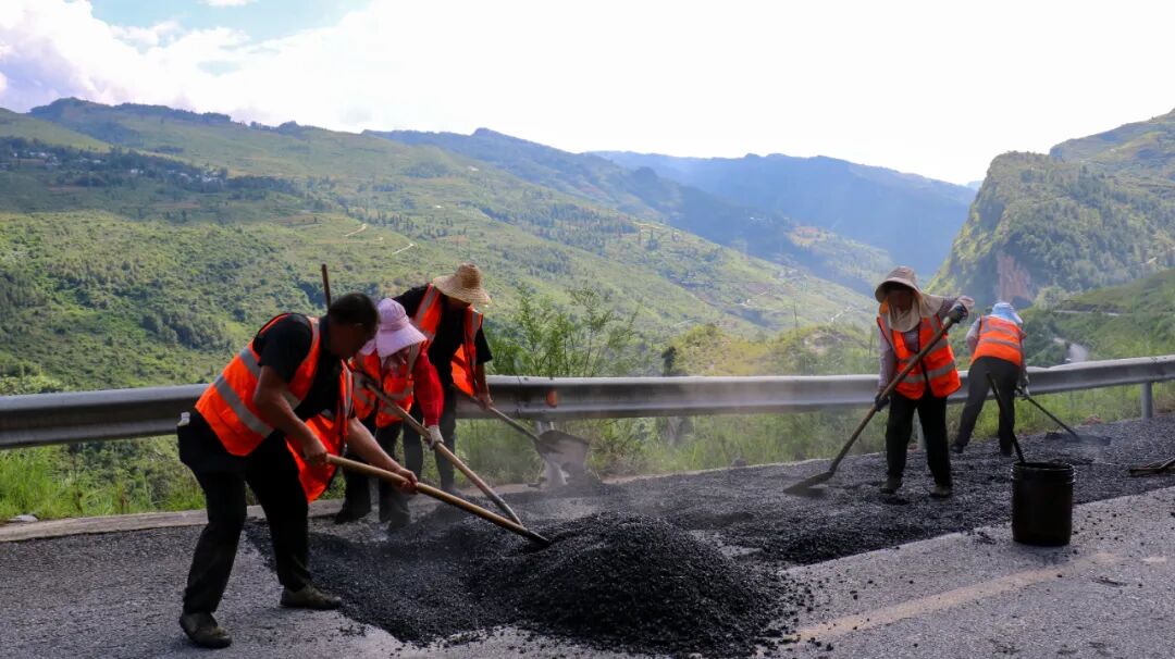 “接得上”更要 “养得好”。接管以来,晴隆公路管理段全面加强日常巡查、路面保洁与路肩修整等基础养护,及时清理坍方路段,对损毁严重路段实施坑槽修补与路面铺装,系统完善交安设施,全方位保障通行安全。截至目前,累计投入人力1050余人次,调动挖机、摊铺机等养护车辆40余台班,清理滑坡体近1.38万立方米,及时解决 S317线杨家坪等路段1000余人的日常通行问题。修补沥青路面 7213平方米,消除茶马镇西泌河两岸、长流镇与六枝镇接壤路段因路面坑槽导致的安全隐患。此外,完成涵洞清理72道,疏通排水设施 5100米,修复挡墙、排水沟403.94立方米,新建及更换标志牌403 块,施划标线7434.3平方米,新增、修复波形护栏2482米,全线路域环境和通行品质得到全面提升。