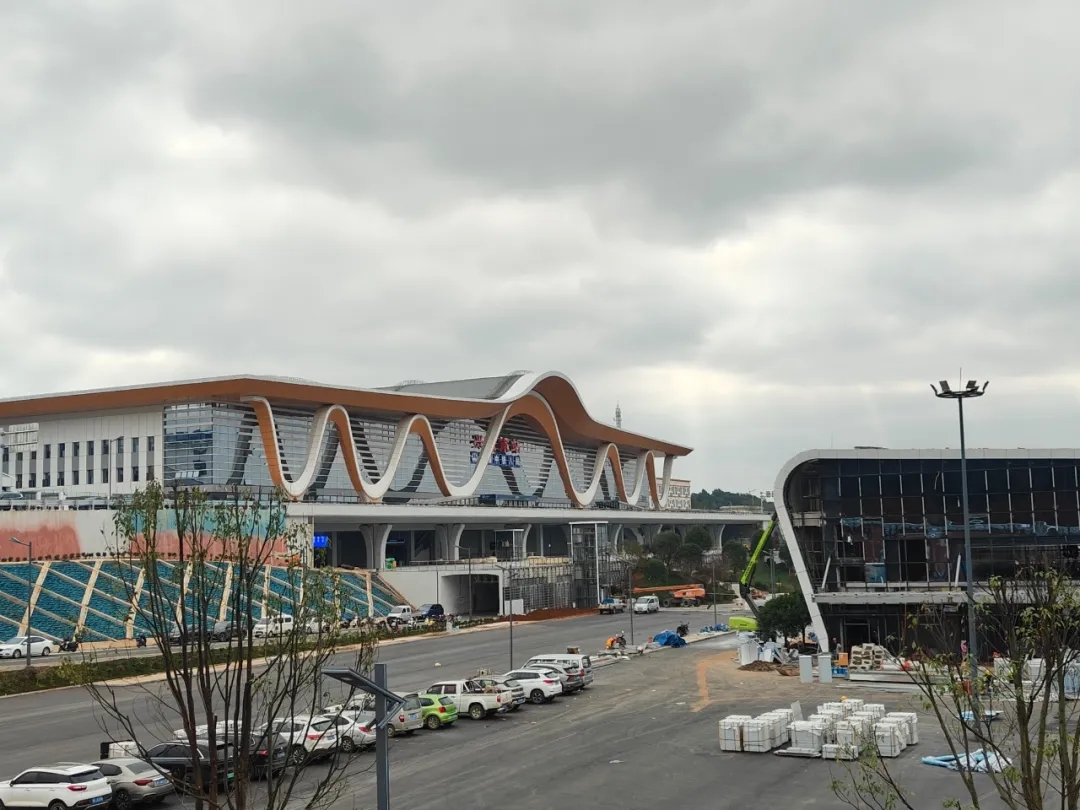 兴义南站于2024年8月1日进场施工,历时一年完成全部建设任务。“建设团队克服了喀斯特地貌地基处理、桩基施工等诸多难题。”中铁八局盘兴铁路站房项目书记梅强介绍,车站屋盖采用全国站房最大的薄腹钢管梁式结构,钢结构工程施工技术难度显著。同时,站房设计深度融入“康养胜地、万峰成林”理念,屋顶起伏呼应喀斯特锥状山形,内部装饰嵌入苗族、布依族文化元素,尽显地域特色。
