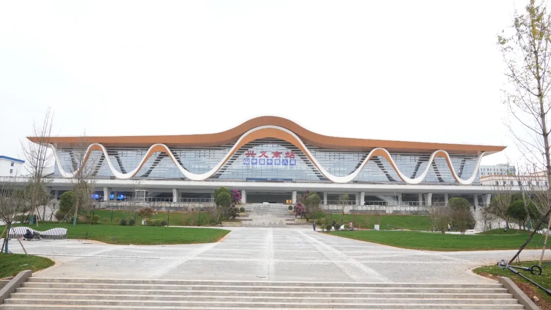 在服务效能方面,兴义南站实现效率与温度并重,车站整合验证、检票流程,4台安检仪多通道同步运行;综合服务中心集售票、退改签、失物招领、公安业务等7项功能于一体,4台全功能自动售票机满足自助需求;二层候车室设4个检票口分流旅客,12306服务台、母婴室、第三卫生间等便民设施一应俱全。