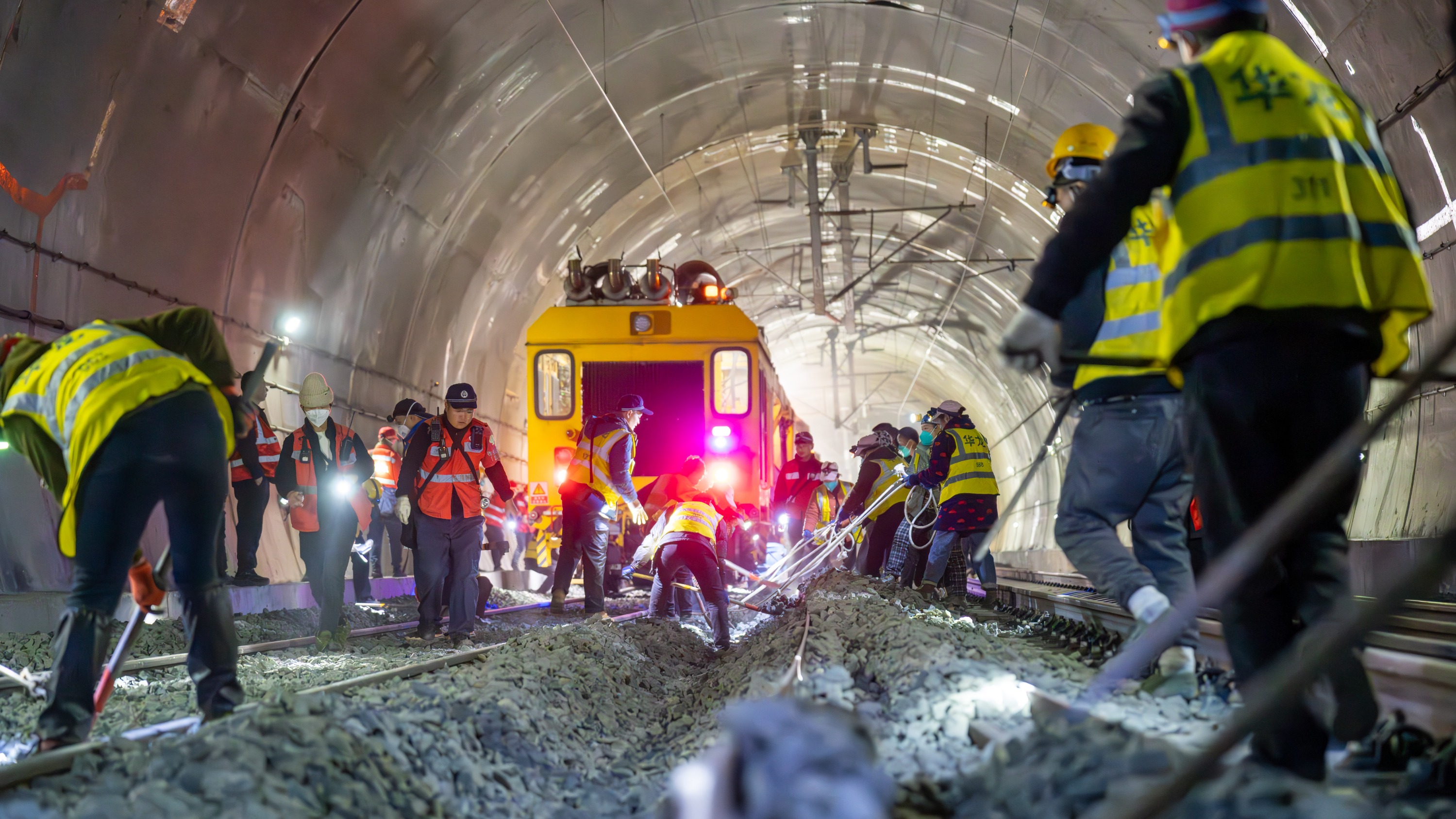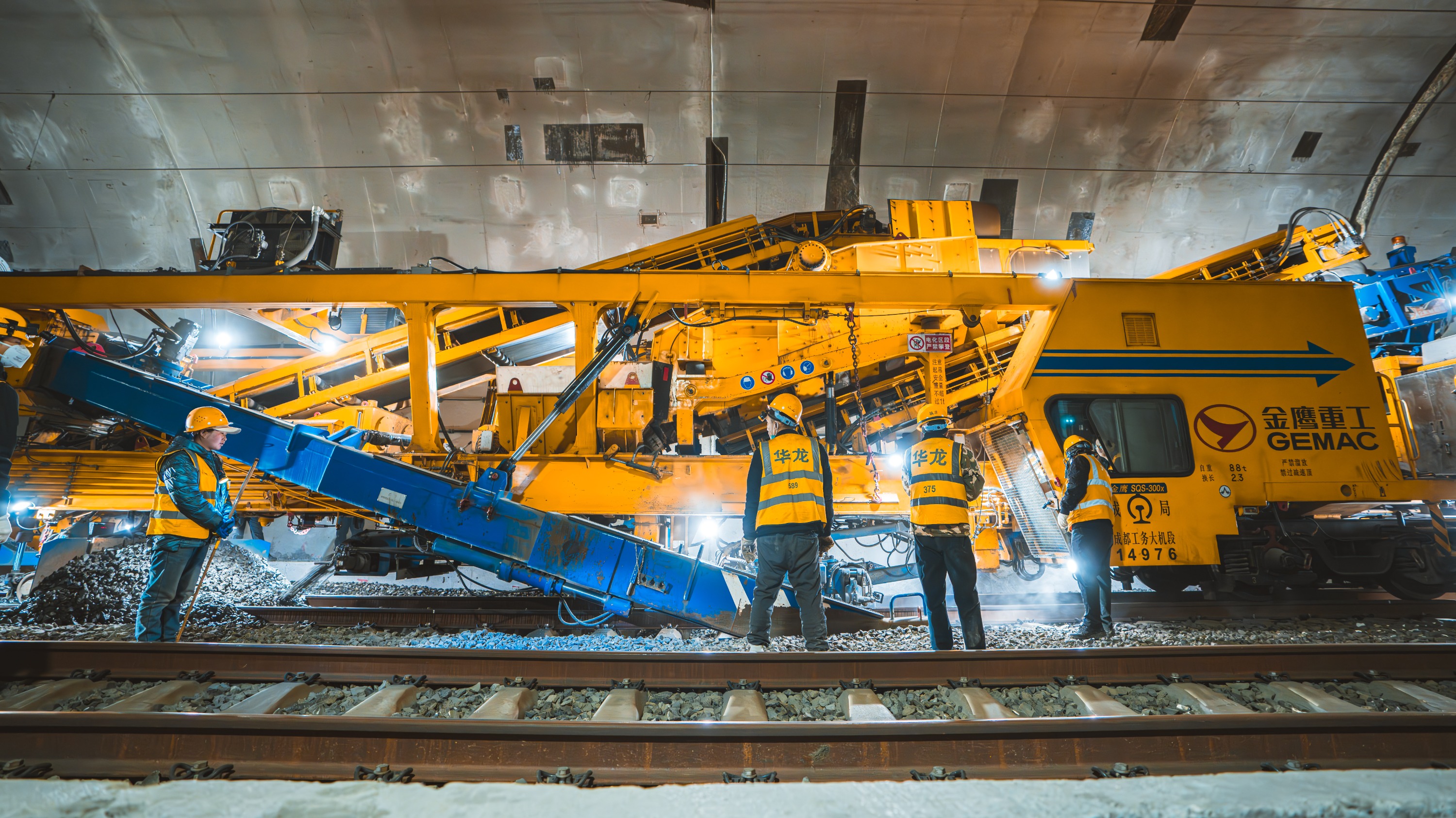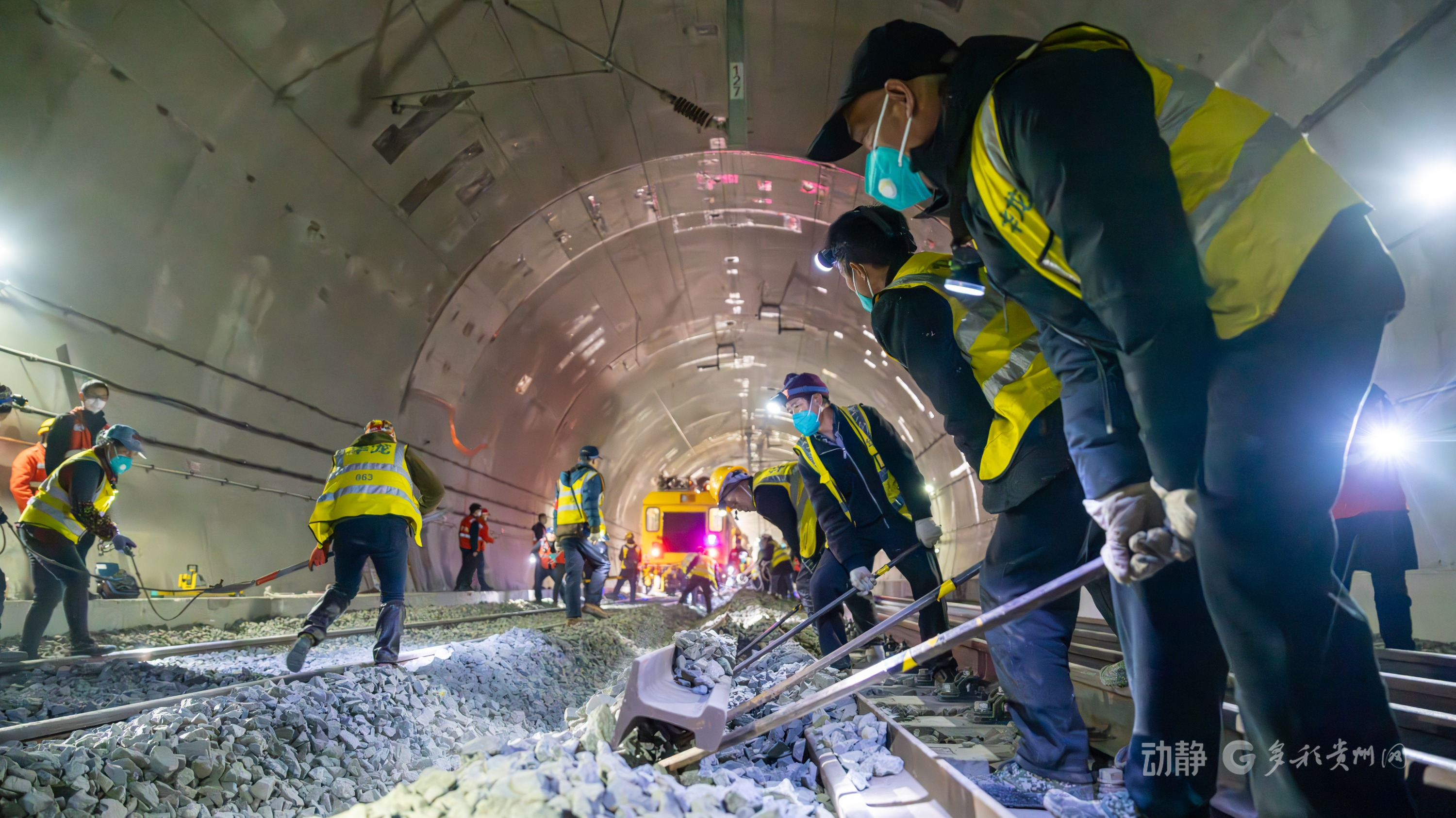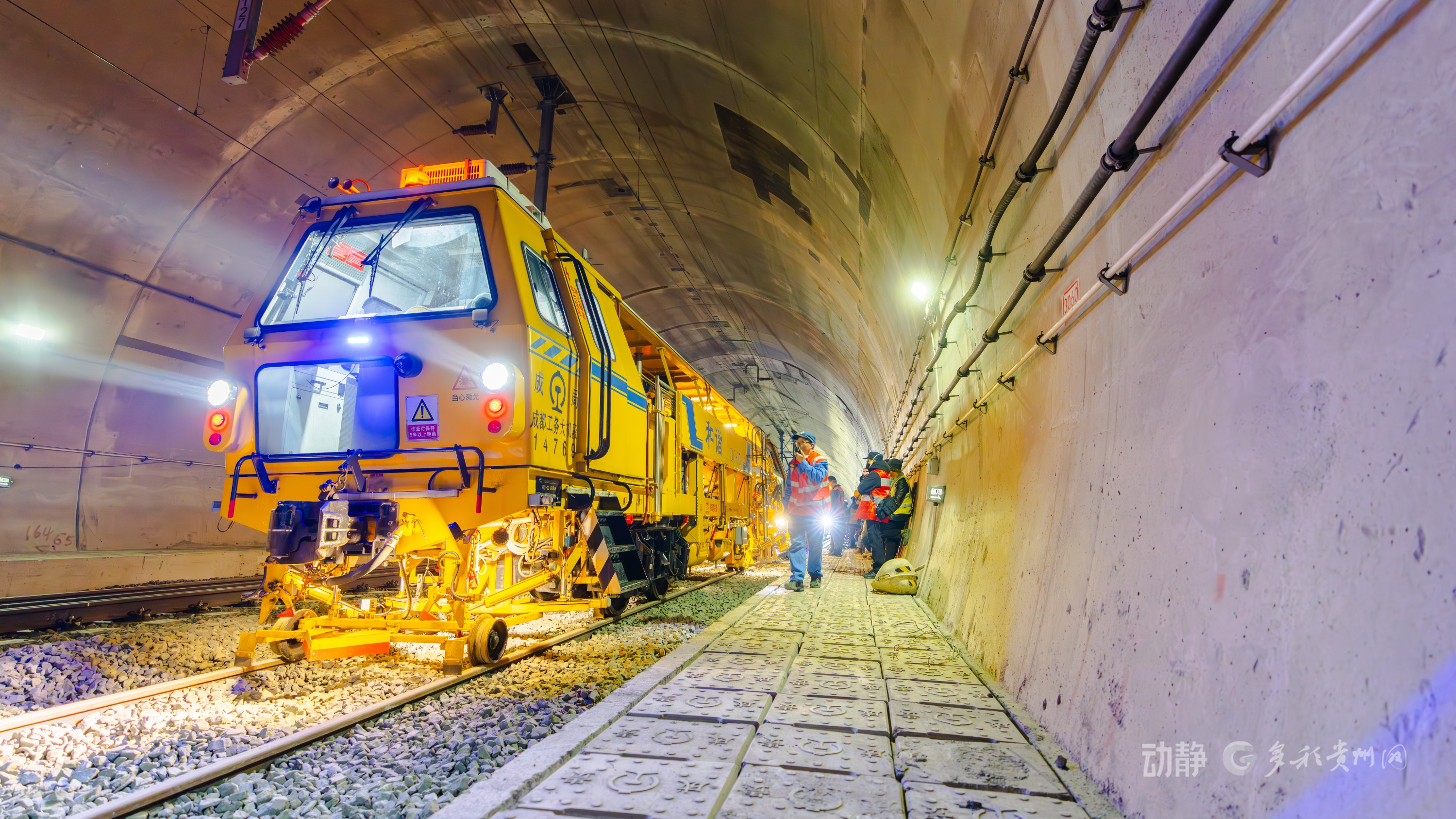 成贵高铁全线共有隧道183座、桥梁468座,全线桥隧比高达81.5%,是一条名副其实的“云上高铁”。国铁成都局统筹全局资源,成立技术协调、质量监管、应急保障等多个专业组,有序推进施工作业。施工前,组织宜宾工电段深入隧道内部,全面掌握隧道结构、空气条件、线路状态等基础情况。各专业组据此制定“一隧道一方案”施工策略。每日线路列车停运后,组织成都工务大机段调集桥隧清筛车、捣固车等18台大型养路机械设备,完成对轨道的道砟更换、线路捣固等作业,并在次日首班动车开行前完成线路检测,避免了对日间动车组正常运行的影响。