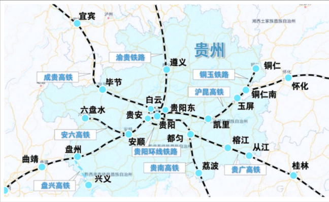 截至目前,贵州已建成17个铁路出省通道,铁路通达54个县,其中高铁覆盖了39个县,全面融入国家“八纵八横”高铁网络,西南陆路交通枢纽的地位和优势进一步彰显。