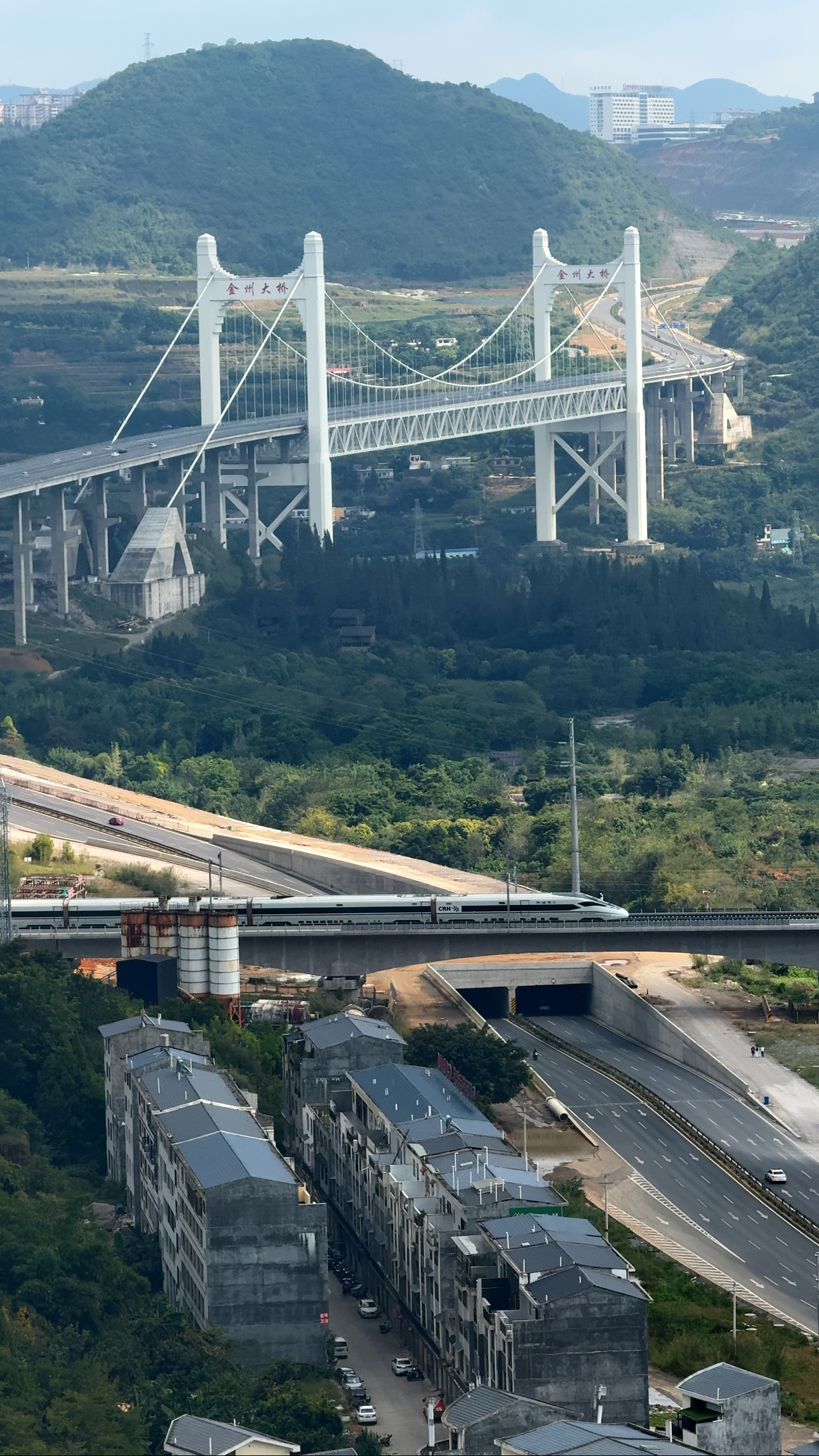 运行试验的高铁与金州大桥同框(邓忠胜)
