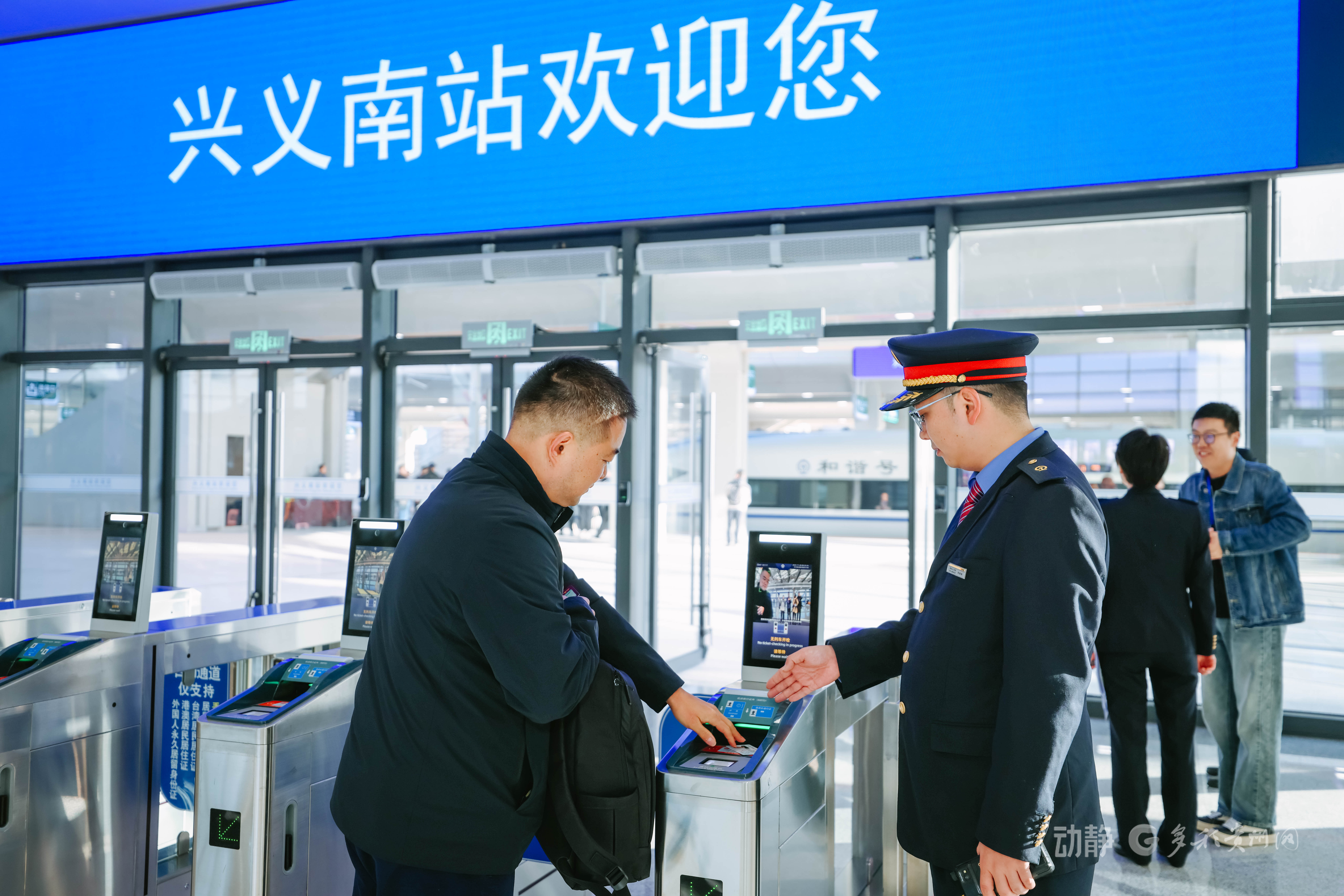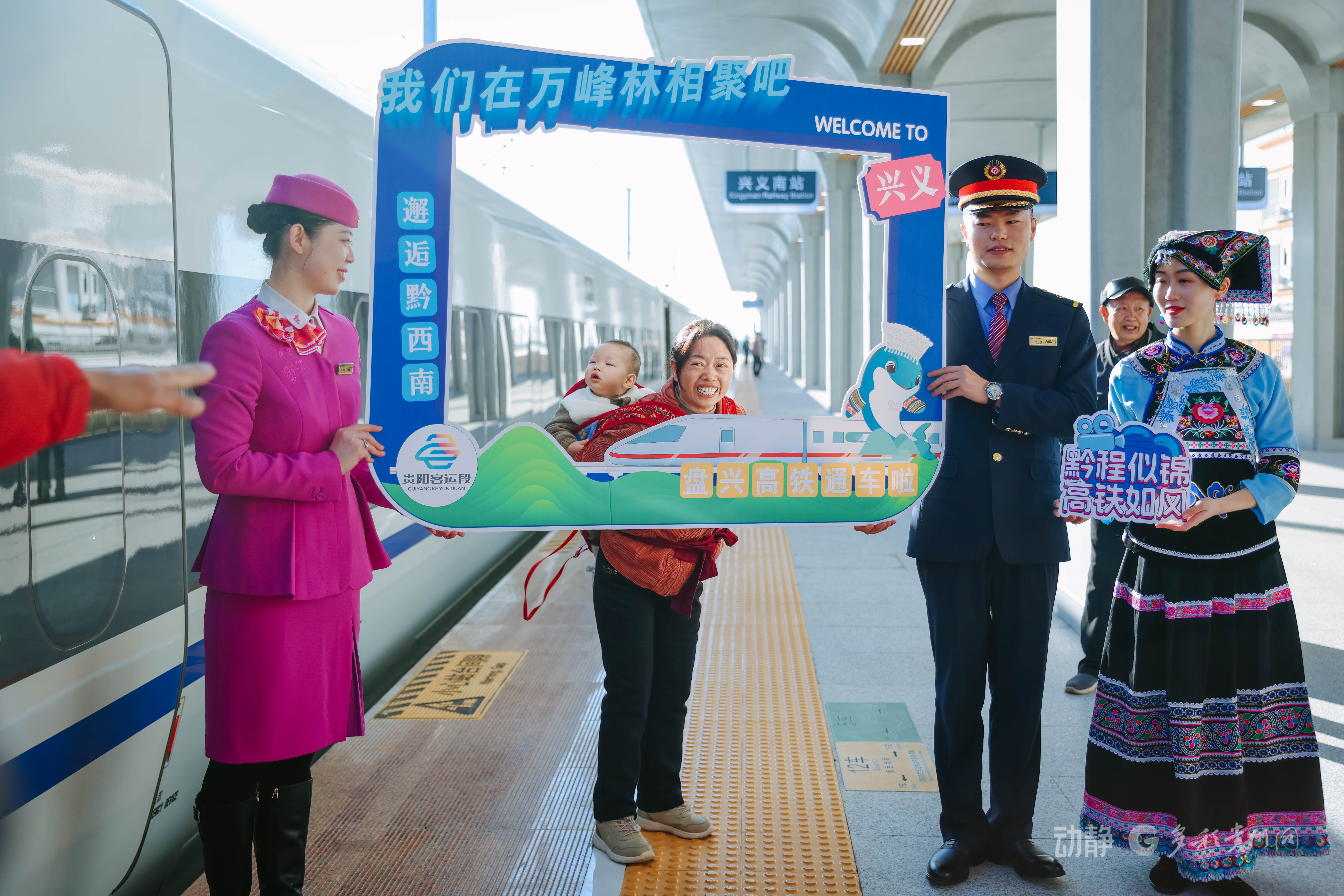 兴义市民唐彦高铁开通前一晚激动睡不着觉,今天带着父亲和孙子来乘坐盘兴高铁首发列车