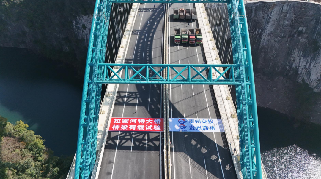 11月25日,贵州交投集团所属路桥集团承建的贵平高速控制性工程——甲青特大桥(原拉密河特大桥)顺利完成桥梁荷载试验,标志着大桥主体结构达到设计标准,为全线通车奠定坚实基础。