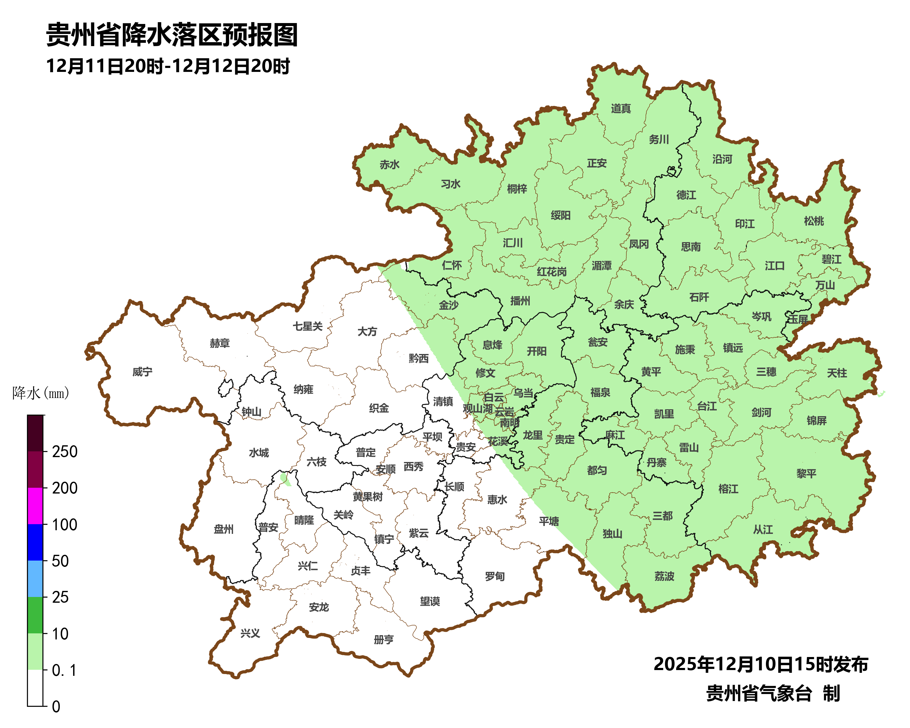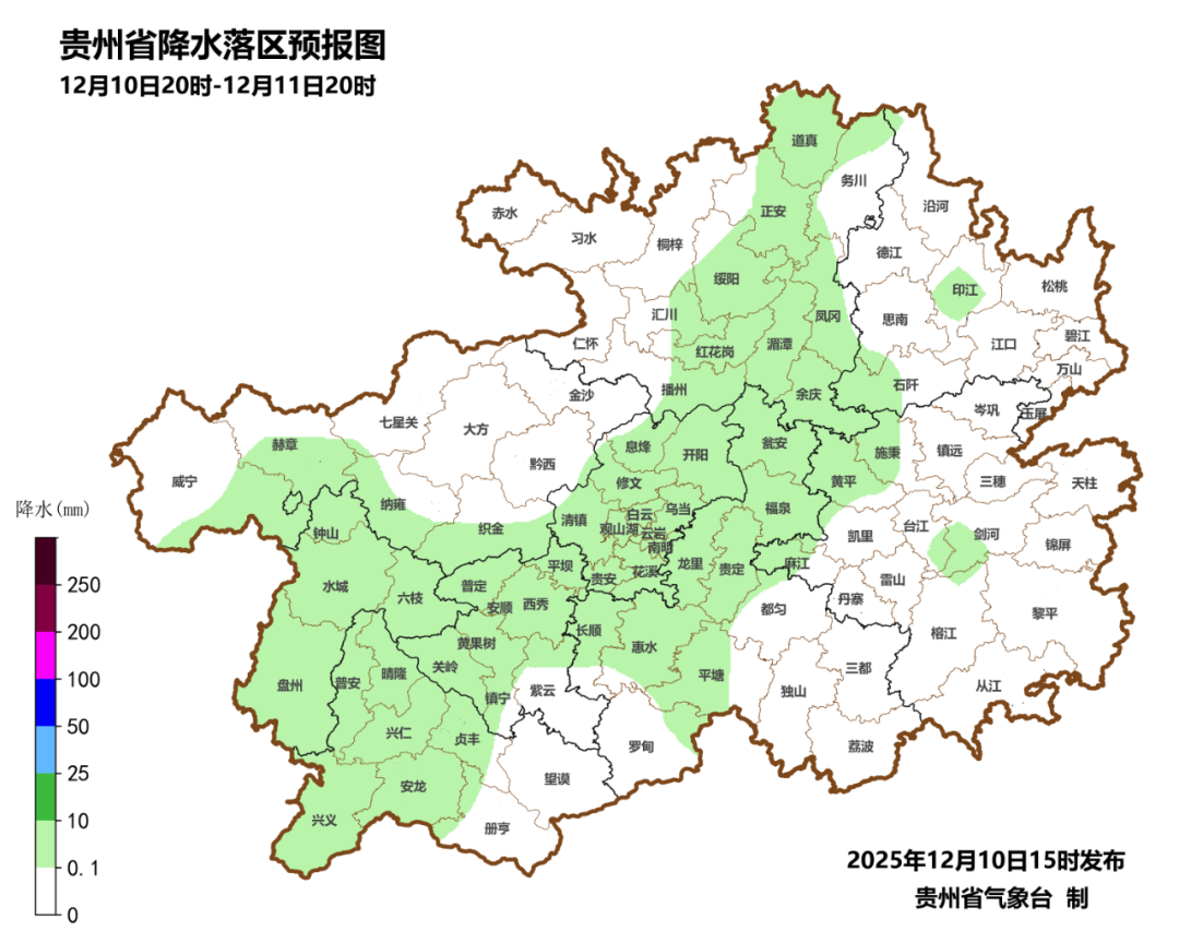 12月12日夜间到13日白天,全省夜间阴天有小雨,白天零星小雨转阴天间多云,西北部高海拔地区夜间到早晨有冻雨或雨夹雪,全省气温明显下降。