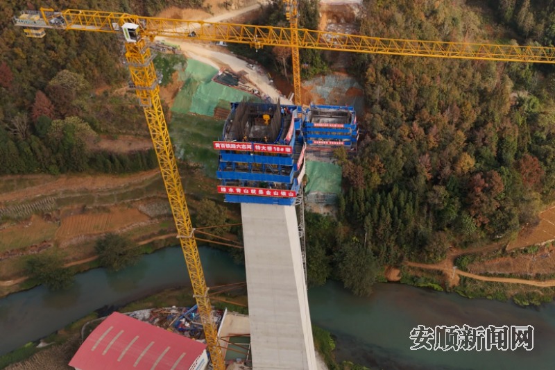 12月19日,随着最后一方混凝土精准入模振捣成型,黄百铁路贵州段重难点工程六志河特大桥18号主墩顺利封顶。这座高达117米的桥墩,是黄百铁路贵州段最高墩,标志着安顺境内铁路建设攻克核心难点,桥梁下部结构施工取得突破性进展。