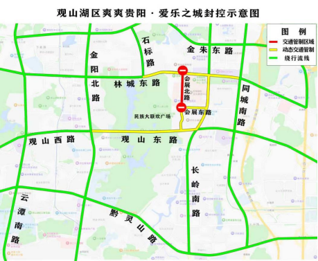 观山东路(长岭北路数博大道至金阳北路段双向)、会展南路(会展北路至观山东路段双向)、会展东路(会展北路至数博大道长岭北路段双向)、林城东路(石标路至同城南路双向)、数博大道长岭北路(观山东路至林城东路双向)于23:00后根据交通实际情况实施临时管制,管制期间禁止车辆通行。