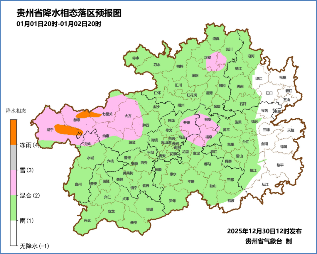 图2 2026年1月1日20时至2日20时贵州省降水相态落区预报图