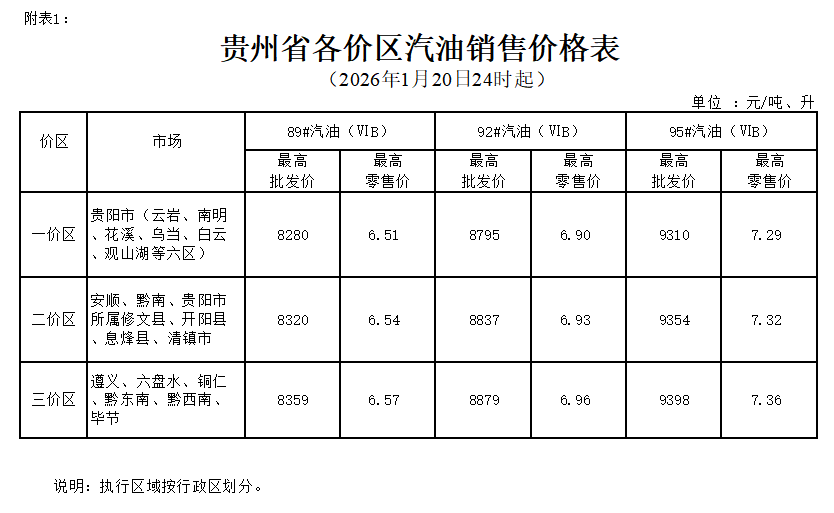 1月20日,贵州省发展改革委发布消息,根据成品油价格形成机制,国家发展改革委决定自2026年1月20日24时起上调国内成品油价格。