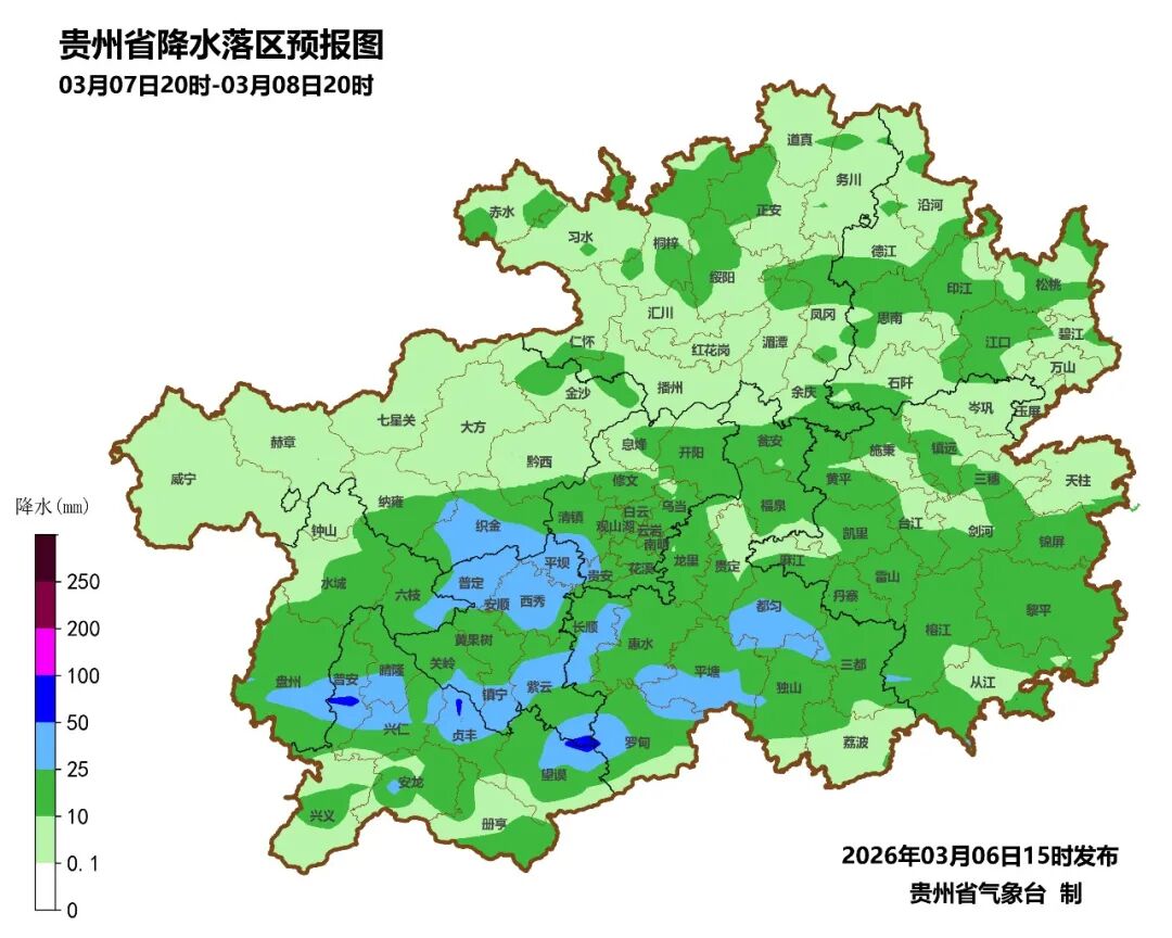 未来十天,贵州两次降温降雨过程出现在7日夜间至9日、14日至15日,局地有中到大雨,需重点关注局地低能见度天气和降温降雨天气对交通运输、旅游活动及公众健康的不利影响;气候条件总体利于春季土壤增墒及在地作物生长,但由于冬季低温雪凝天气偏少,预计春季病虫害偏重发生风险较高,需抓住有利天气和关键农时及时喷药做好春季病虫防治。